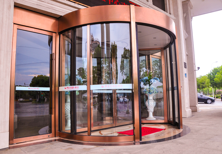 旋转门安装总结,旋转门零配件的链接必须结实牢固,结构必须有足够的强度和刚性,以确保门的开闭。旋转门扇、门梁导轨、下导轨的安装的位置应精准、结实牢固、可靠、感应装置、链接方式和开启方向、探测器感应范围的安装的位置应符合设计要求和相应行业标准。